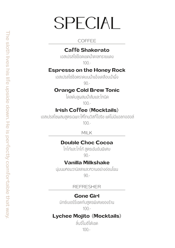 As you indulge in your favorite brew, take a moment to observe your surroundings and relish the peaceful atmosphere that envelops SLOTH CAFE. It's a place where time slows down, allowing you to unwind and enjoy each sip fully.