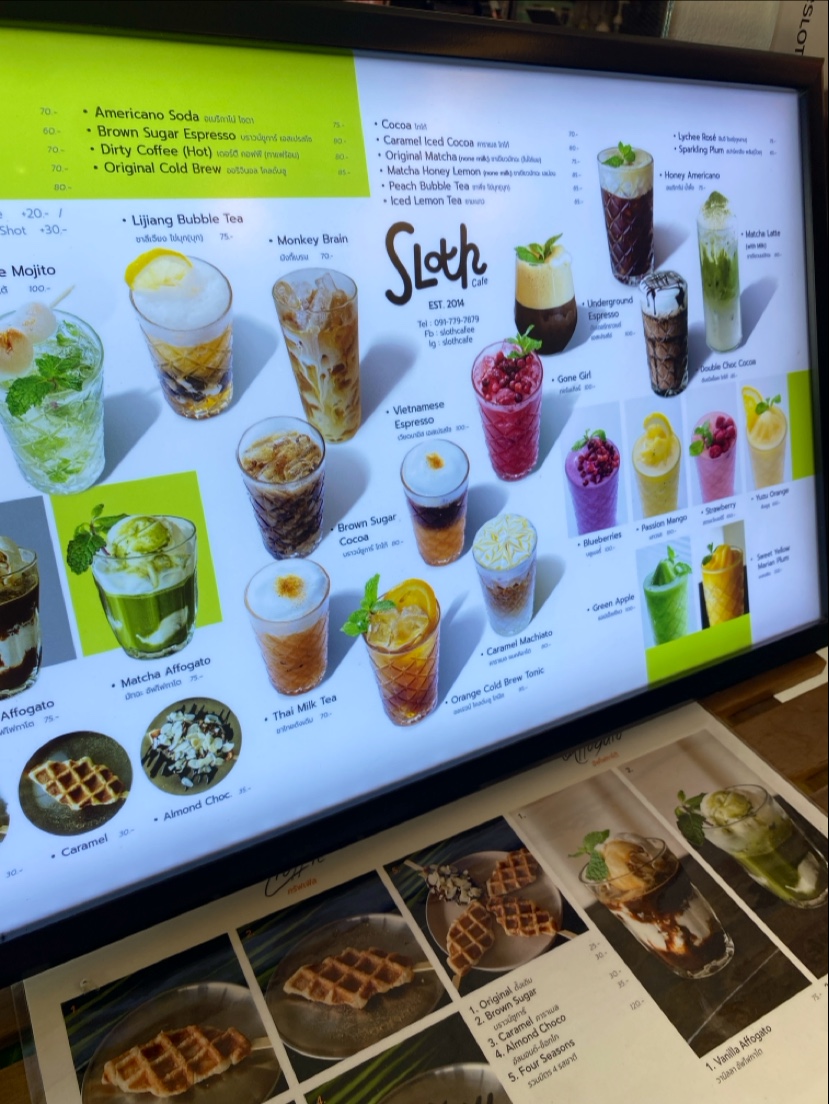 The menu here is a delightful mix that caters to various palates. Whether you are in the mood for a rich, aromatic coffee, a refreshing Thai tea, or a sweet slice of cake, SLOTH CAFE has you covered. Customers rave about their delicious coffee, which is not only pleasing to the palate but also beautifully presented—a visual treat that makes each visit a special occasion. And if you’re a dessert lover, you’ll find that the selection of cakes and baked goods makes for the perfect accompaniment to your drink.
